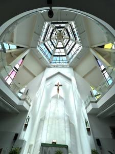 2019年8月17日才落成啟用的汐止聖方濟朝聖地,6年來,朝聖人潮絡繹不絕,最大的原因當然是亞西西聖方濟的傳奇一生,與主密契的恩寵與神修,引人歆羨嚮慕,聖方濟的一級聖髑恭奉在此,朝聖者勤懇敬禮不輟;另一方面,聖堂現代化的明亮通透建築風格,著實令人耳目一新,完全自然採光的高挑設計,天光自高處落在至聖所,那匠心獨運的藝術,讓朝聖者充滿沐浴在光中的聖潔與希望;而沿著聖堂兩側的立體鐵鑄十四處苦路,望而頓生臨場感,恍然聽聞無情鞭笞、婦孺飲泣、基督力盡而再三跌倒、被釘十架的椎心痛楚,歷歷在目;環堂四周巨幅的彩繪玻璃,更從伊甸園的生命樹,聖神照臨於世,聖言降生成人,呼應到聖方濟的〈萬物頌〉;儘管彩玻色澤鮮麗明快,仍能讓人靜心默思。