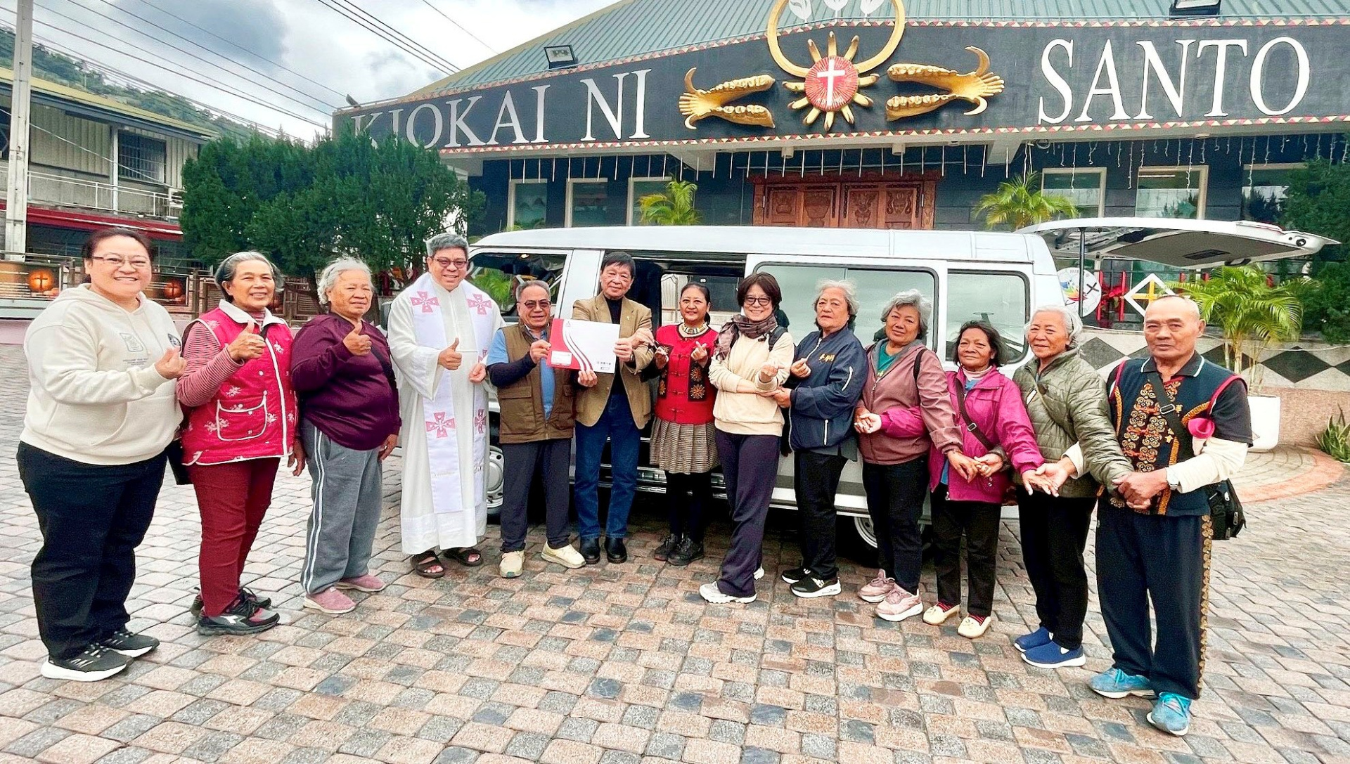 1 月 6 日,基金會董事長與執行長親自前往台東參與贈車與祝福儀式。為減輕往返奔波,蔡恩忠神父與教友們貼心地選在鄰近機場的金崙天主堂集合,在那裡完成捐贈。簡單的場地、熟悉的面孔,讓儀式顯得格外溫暖。