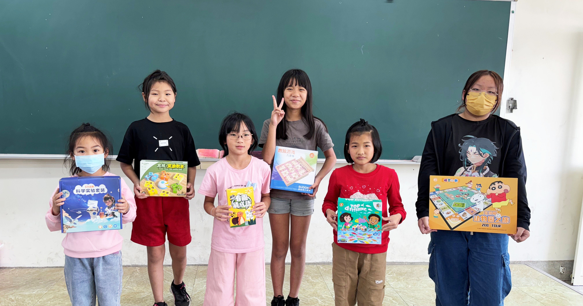 我們和老師討論著該準備什麼樣的小禮物,幾天後,孩子開心地站在黑板前,手裡抱著桌遊或書本,笑得燦爛。但真正值得被看見的,並不是那份獎勵,而是他們願意為自己負責的那段過程。